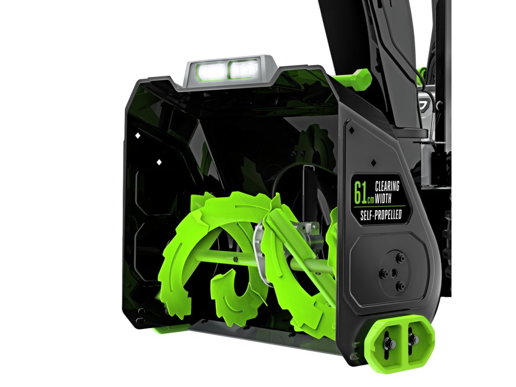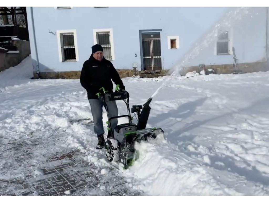 Sněhová fréza EGO SNT2400E je prvním modelem dvoustupňové sněhové frézy na trhu. Síla od spolehlivého a výkonného elektromotoru je na kola předávána prostřednictvím variabilního elektropojezdu. Dvoustupňová AKU sněhová fréza EGO se staví na stejnou úroveň výkonu, jako dvoustupňové sněhové frézy poháněné spalovacím motorem, pouze bez hluku a spalin ve výfukových plynech. Akumulátorová technika zcela odstranila starosti s problémovými studenými starty spalovacích motorů.