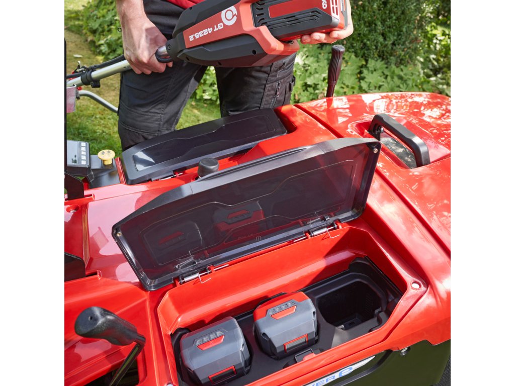Nastavitelné sedadlo, intuitivní ovládací prvky, centrální nastavení výšky sečení a snadné vyprazdňování koše – to všechno přispívá k pohodovému provozu.