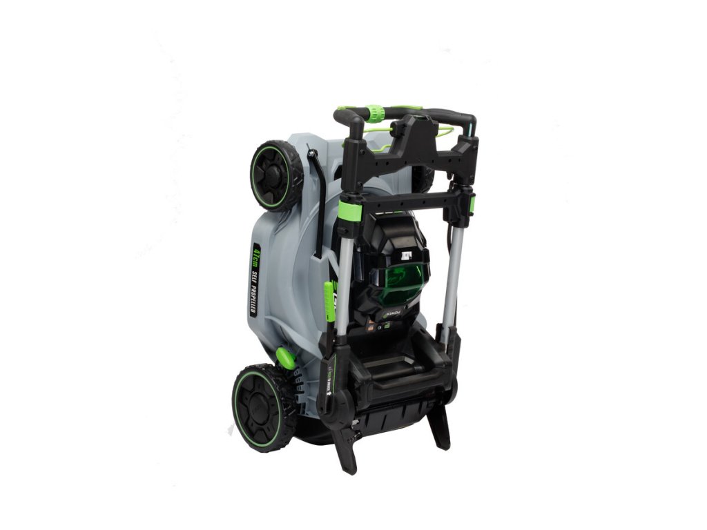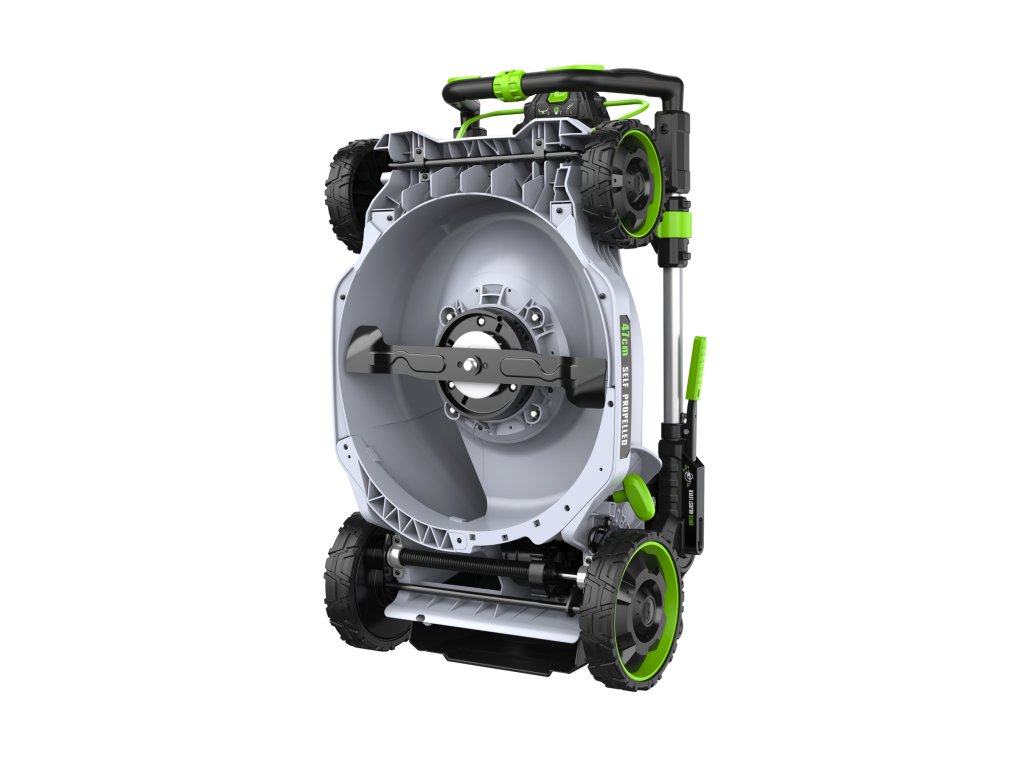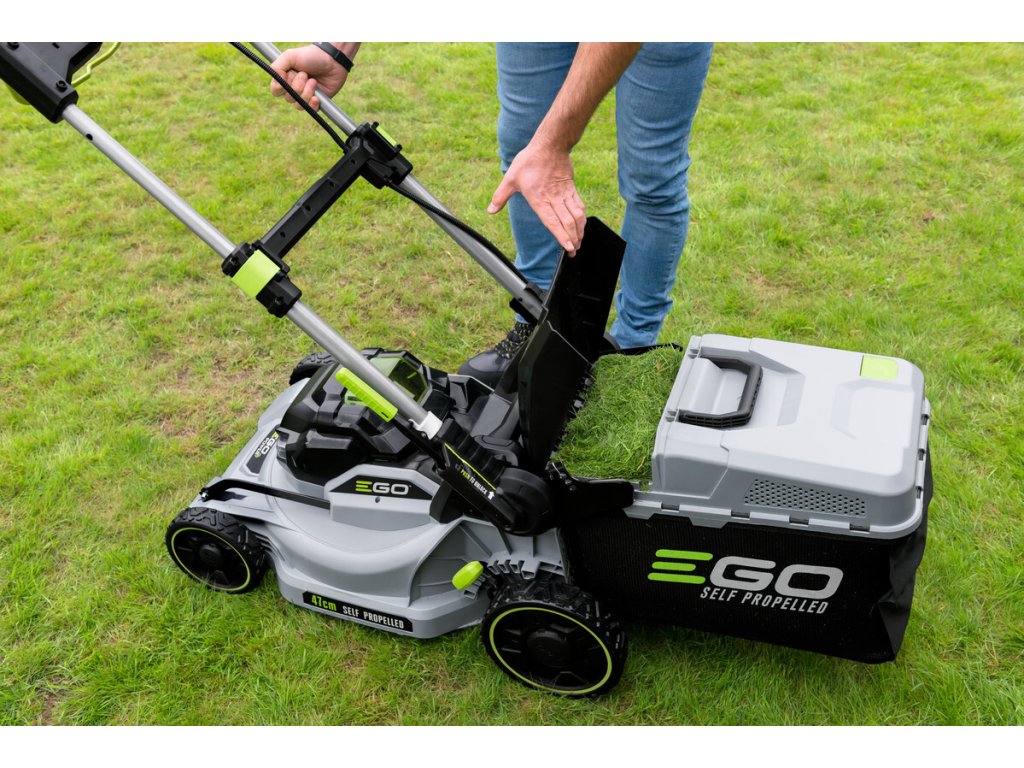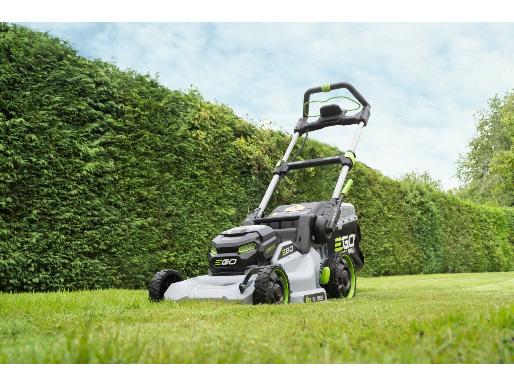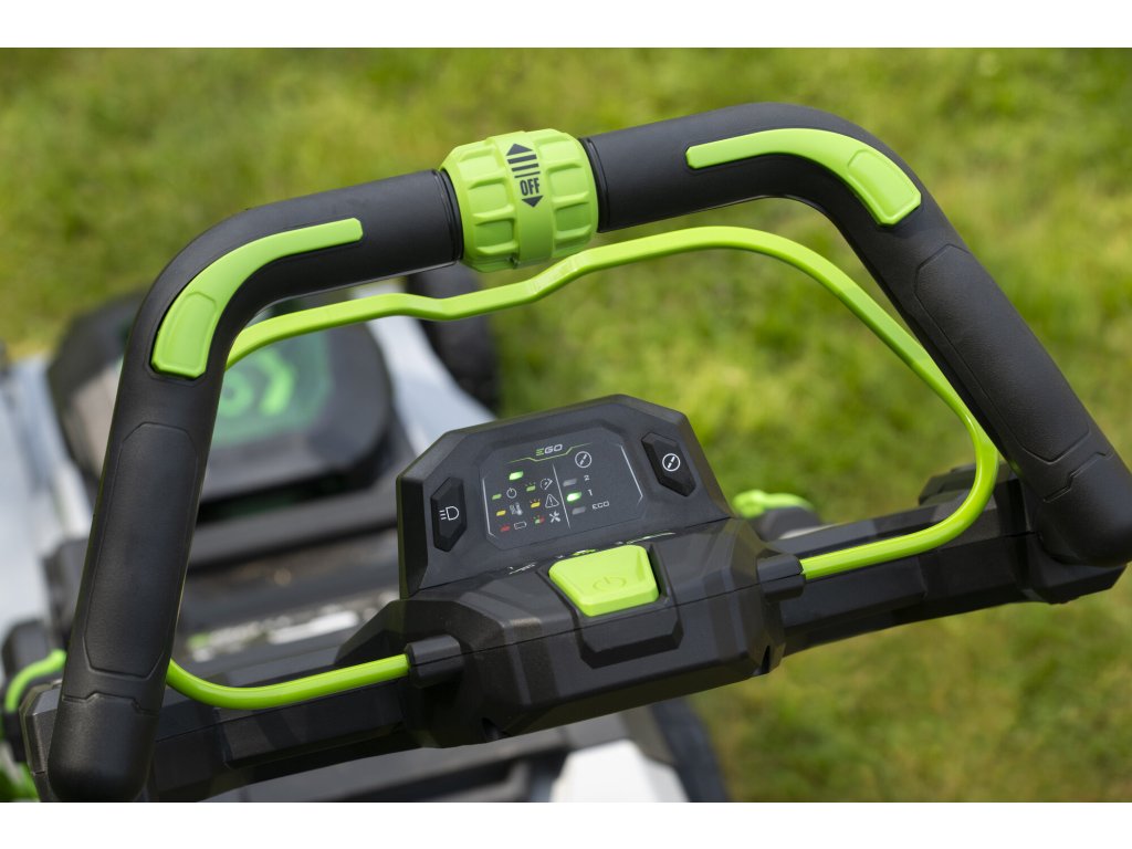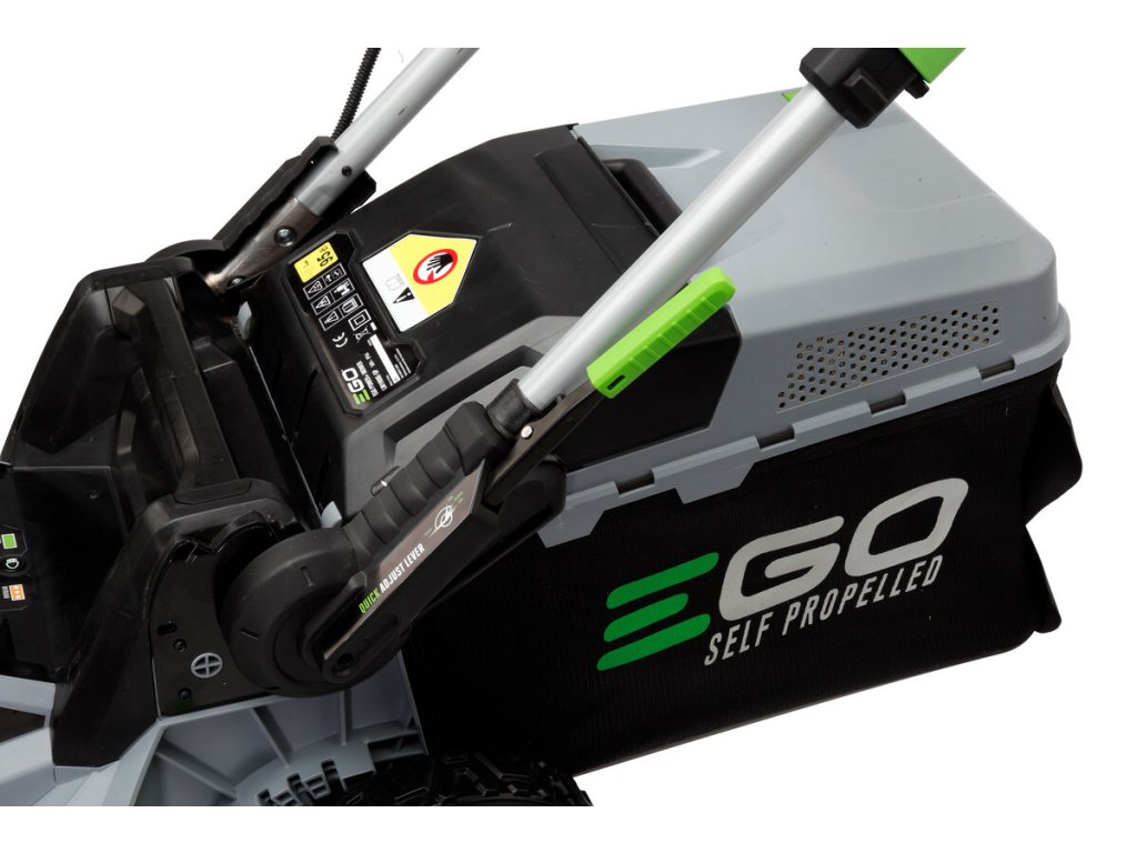 Model EGO LM 1914E-SP - záběr sečení 47cm a plynule proměnlivý pojezd, volič režimu sekání, objem sběrného koše 55L, teleskopická a výškově nastavitelná komfortní rukojeť.