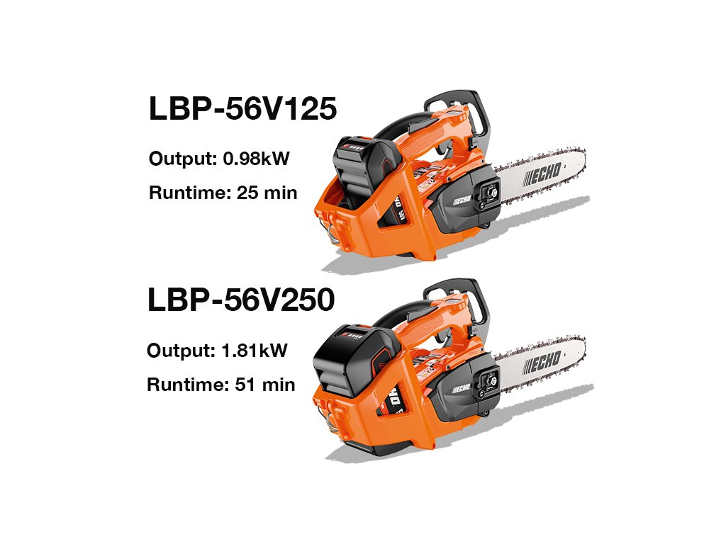 Pila je dodávána bez baterie a nabíječky – doporučujeme kombinovat s bateriemi ECHO 56V 2,5 Ah nebo 5 Ah pro delší dobu provozu.