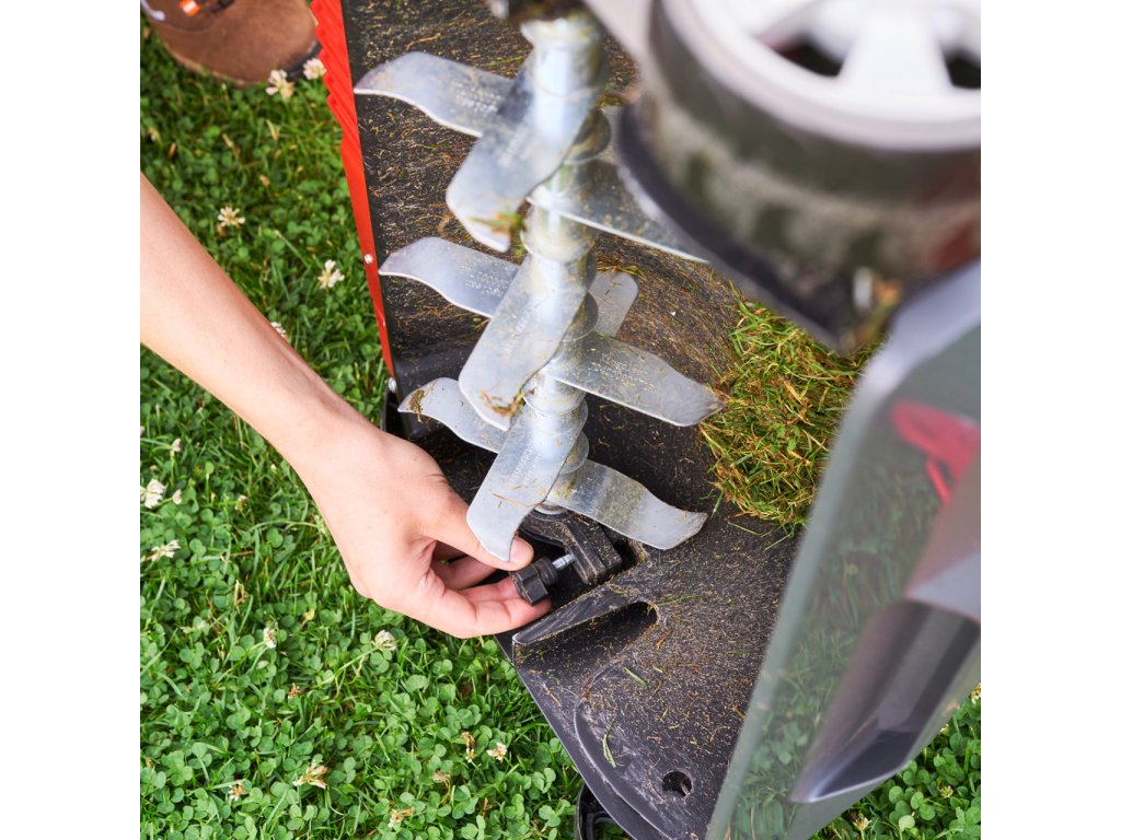 - Obsahuje vertikutační válec (38 cm), vyčesávací válec (38 cm) a sběrný koš (50 l)