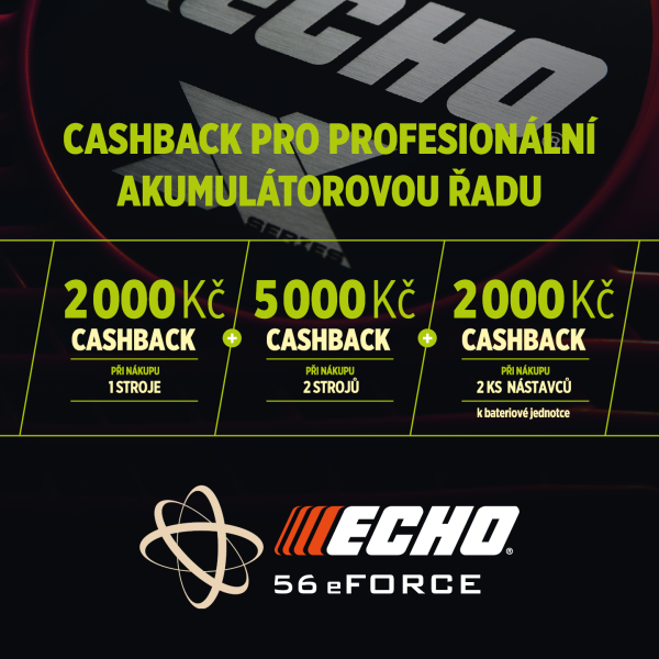 Řada AKU ECHO 56 V představuje špičkovou akumulátorovou techniku pro údržbu zahrady, která spojuje výkon srovnatelný s benzínovými stroji, tichý provoz a maximální uživatelský komfort. Profesionální japonská značka ECHO využívá moderní 56V lithium-iontové baterie, které zajišťují vysoký výkon, dlouhou výdrž a rychlé nabíjení.