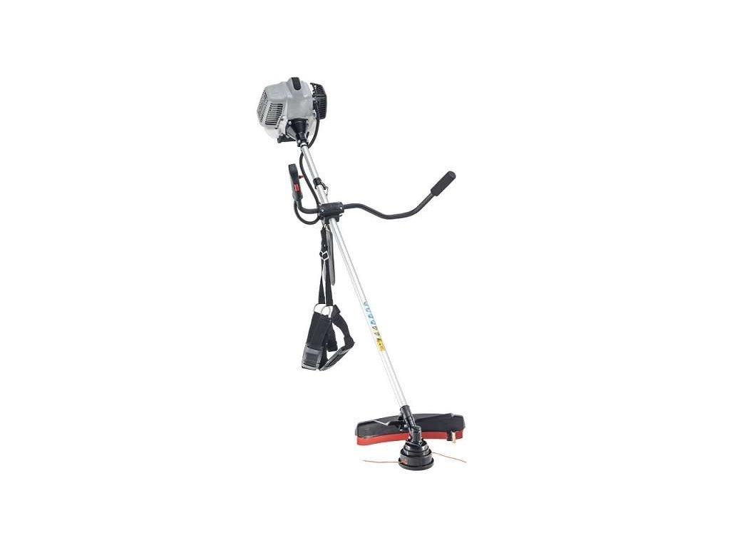Součástí balení je trojzubý ocelový kotouč, strunová poloautomatická hlava a dvojité popruhy.